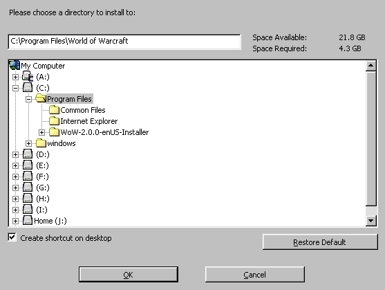 - Each device on the system will be assigned a letter. If installing WoW via disc, you'll want to note the drive letter for use when starting the install.